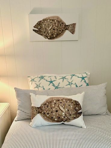 I think that our spot on the beach at Atlantic Beach is one of the greatest places on earth, I am happy to share the Ocean Ridge Collection with you! The prints, pillows, hats and other items in this collection are all hand-drawn originals that were reproduced for display wherever fish are appreciated.